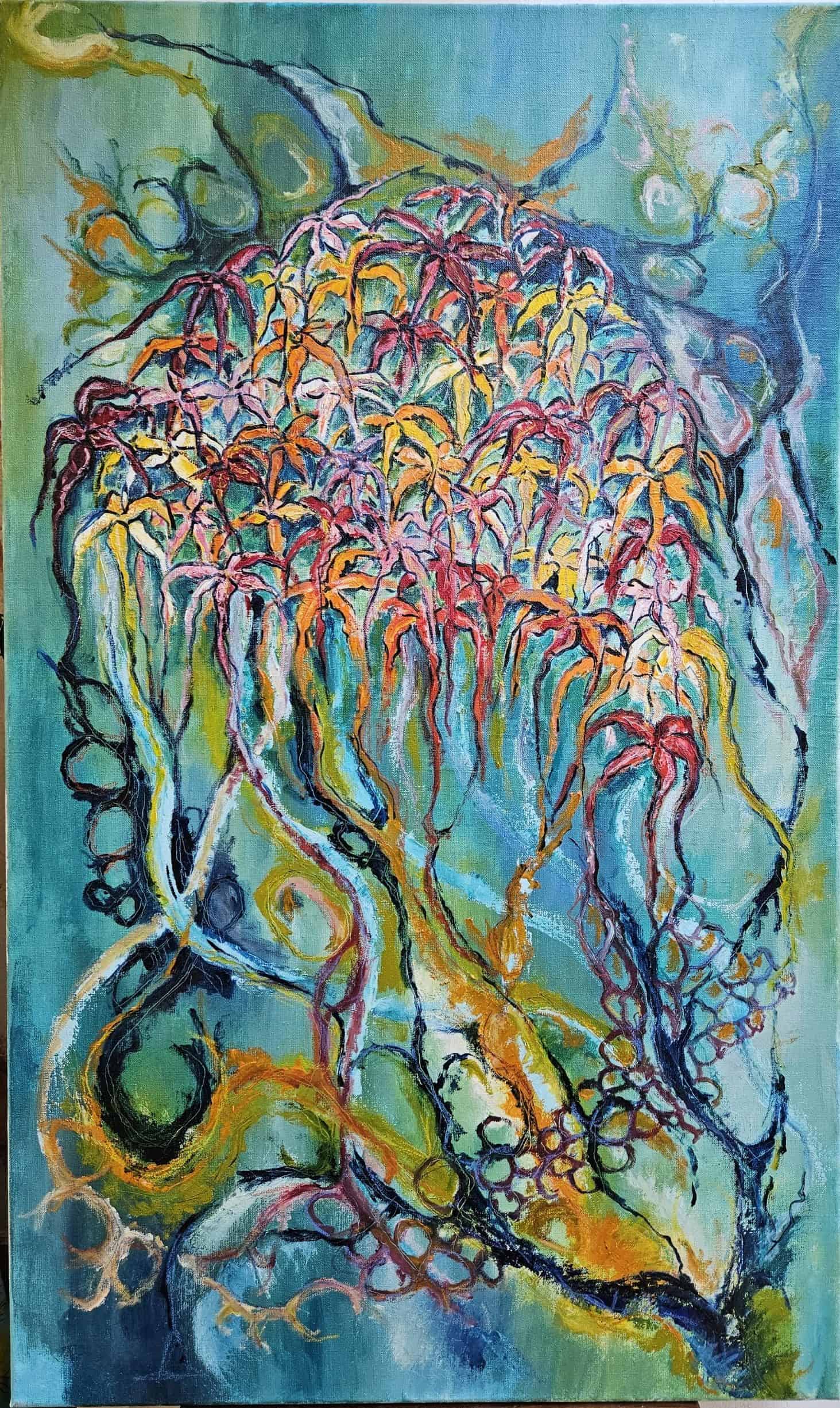 Mijn schilderijen zijn intuïtieve ontdekkingen van kleur, vorm en organische structuren. Vaak geïnspireerd door natuur en fantasie, ontstaan ze bijna vanzelf – als een ontmoeting tussen realiteit en verbeelding. Ik werk voornamelijk met olieverf op doek, waarbij ik speel met heldere kleuren en natuurlijke vormen die een moderne en soms surrealistische uitstraling krijgen.